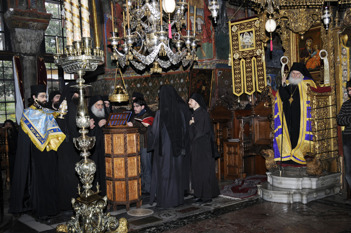 Μετά το τέλος της Τράπεζας έγινε Δέηση στο Καθολικό της Μονής, όπου είχαμε την ευτυχή συγκυρία να παρευρεθεί και ο μητροπολίτης Θήρας και Αμοργού κ.κ. Επιφάνιος.