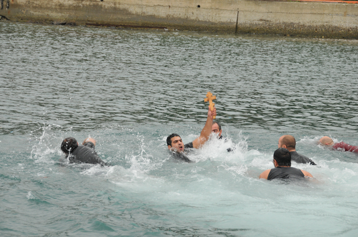 Το πρωί, την ημέρα της εορτής (6/19 Ιανουαρίου) μετά τον Μεγάλο Αγιασμό, ξεκίνησε η πανηγυρική Θεία Λειτουργία και αργότερα έφτασε η ώρα της Κατάδυσης του Τιμίου Σταυρού (κατά μίμηση της πράξης του Κυρίου).