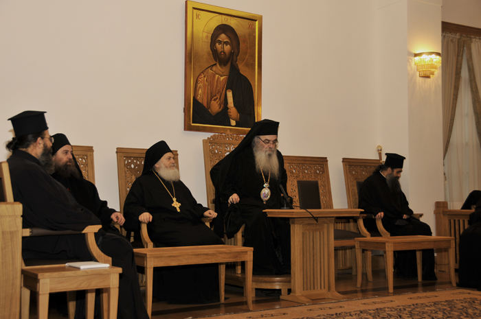 Μετά ακολούθησε εορταστική σύναξη στο Συνοδικό της Μονής με σύντομες ευχές και ομιλίες του Γέροντα και του φιλοξενούμενου Μητροπολίτου Καστορίας κ.κ. Σεραφείμ.