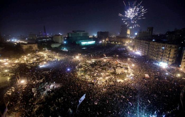 «Ο λαός έριξε το καθεστώς» «ο Λαός νίκησε», φώναζε το τεράστιο πλήθος από την πλατεία Ταχρίρ στην πρωτεύουσα της χώρας, σύμβολο της έναρξης των λαϊκών κινητοποιήσεων που οδήγησαν στην έξοδο του επί 30 χρόνια προέδρου της Αιγύπτου.