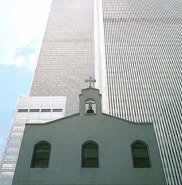 Ο Ναός του Αγίου Νικολάου στην σκιά των Διδύμων Πύργων πριν τα τραγικά γεγονότα της 11ης Σεπτεμβρίου 2001.