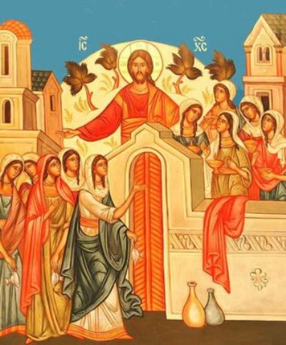 As the night of the present life was going by, all the virgins fell asleep, that is, they died, for death is called a sleep. While they were sleeping, a cry rang out in the middle of the night, «Behold, the Bridegroom is coming; go out to meet Him!» (Matt. 25:6). Those who had their oil ready and lamps trimmed went inside to the Bridegroom when the doors were opened. Earlier, the others, who had insufficient oil after their sleep, had asked the first for oil. The wise virgins wished to give them some, but could not. Before they went inside, they replied, «No, lest there should not be enough for us and you; but go rather to those who sell, and buy for yourselves» (Matt. 25:9). While they went to buy, the Bridegroom came, and those who were ready went in with Him to the wedding, and the door was shut (See Matt. 25:10). The foolish virgins knocked on the doors and called out, «Lord, Lord, open to us» (Matt. 25:11). But the Lord Himself uttered the terrible reply: «Assuredly, I say to you, I do not know you» (Matt. 25:12). For how can you see the Bridegroom if you lack the dowry of mercy? On account of this depiction, the parable of the ten virgins was given its place here by our God-bearing Fathers to teach us always to be watchful and ready to meet the true Bridegroom with good works, especially almsgiving, because the day and hour of the end are unknown to us. Therefore, it is made quite clear that after death, correction of mistakes and wicked acts shall be impossible, a teaching which is also found in the parable of the rich man and Lazarus the beggar. (See Luke 16:19-31)