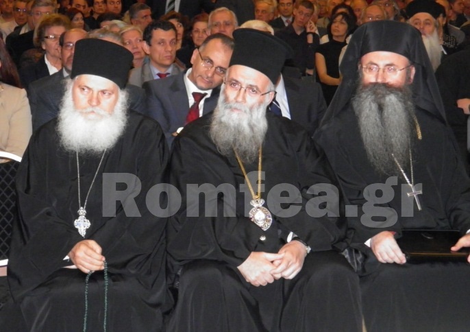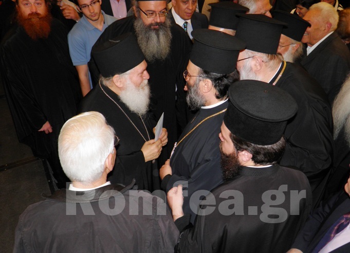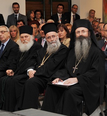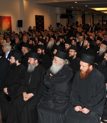Ακολούθησε ο χαιρετισμός εκ μέρους του Οικουμενικού Πατριάρχη κ.κ. Βαρθολομαίου από τον πανοσιολογιώτατο αρχιμανδρίτη Γρηγόριο Παπαθωμά, καθηγητή του Εκκλησιαστικού Δικαίου της Θεολογικής Σχολής του Πανεπιστημίου Αθηνών και ο χαιρετισμός εκ μέρους του Αρχιεπισκόπου Αθηνών κ.κ. Ιερωνύμου από τον πανοσιολογιώτατο αρχιμανδρίτη Τίτο Γαρυφαλάκη.
