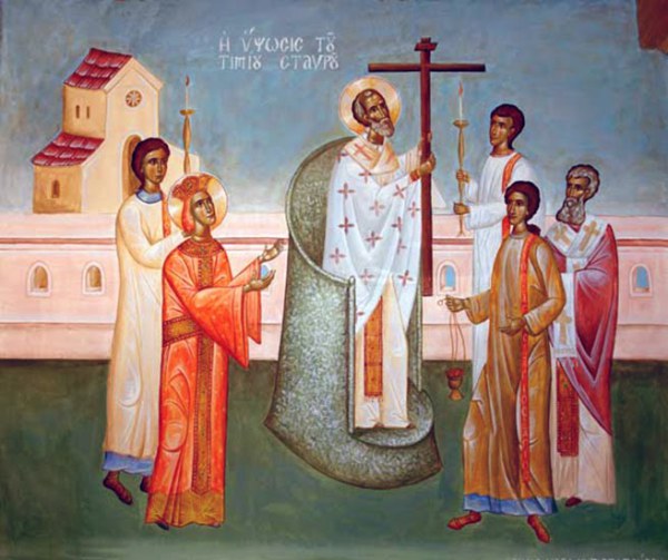 Η ανεύρεση και ύψωση του Τι¬μίου Σταυ¬ρού, που είναι η ση¬μαία της σωτηρίας του ανθρωπίνου γένους, έγινε με τρόπον θαυμαστόν και υπερθαύμαστον από την Αγίαν Ελένην την Ισαπόστολον, που είχε μεταβή για προσκύνηση στους Άγιους Τό¬πους και με την ρητήν εντολήν του γιου της αυτοκράτορας Κων¬σταντίνου να βρή τον Τίμιον Σταυρόν, τον οποίον είχαν εξα¬φανίσει οι αντίχριστοι Εβραίοι και οι ειδωλολάτρες. Είχαν ρίξει και τους τρείς σταυρούς σε έναν βαθύ λάκκον και τον σκέπασαν με χώματα και πέτρες και πολλά σκουπίδια. Εκεί έμεινε ο Τίμιος Σταυρός για περισσότερα από τριακόσια χρόνια.