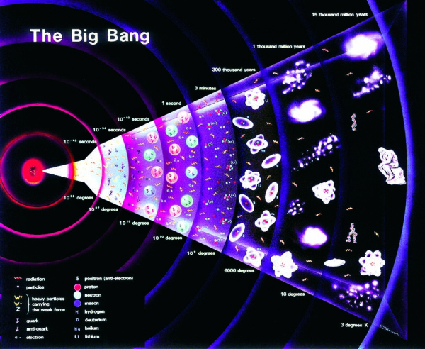 α. Κατά τα πρώτα τέσσερα λεπτά της Μεγάλης Έκρηξης, θα πρέπει να δημιουργήθηκε το ήλιον και τα άλλα ελαφρά στοιχεία, και