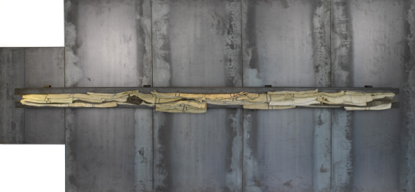 Σίδηρος, τσόχα, βαμβακερό ύφασμα σε σιδερένιο πάνελ