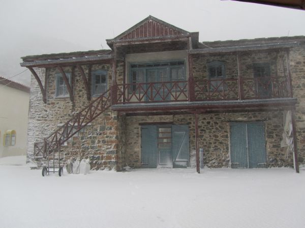Χιονοθύελλα από το πρωϊ στη Δάφνη στο Άγιον Όρος