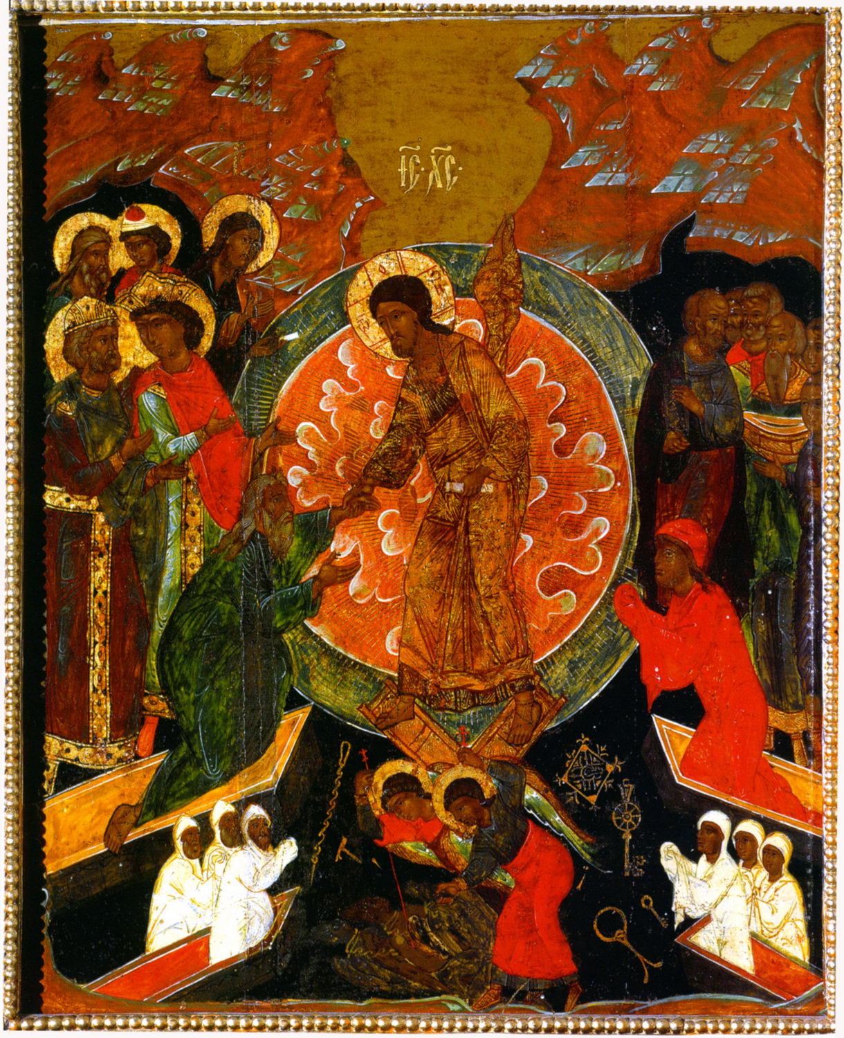 Το αναστημένο σώμα του Κυρίου έχει κι άλλα στοιχεία. Φέρει επάνω Του τα στίγματα του σταυρού, τους τύπους των ήλων και την ουλή από τον λογχισμό. Σχολιάζοντας ο Θεοφύλακτος Βουλγαρίας το «όψονται εις ον εξεκέντησαν» λέγει: «ότε γαρ έρχεται κρίναι, τότε όψονται αυτόν εν σώματι κρείττονι και θεοειδεοτέρω και γνωριούσιν οι εκκεντήσαντες και όψονται». Σύμφωνα με το όραμα της Αποκαλύψεως, ο Κύριος εμφανίζεται επί του υπερουρανίου θυσιαστηρίου ως «αρνίον εστηκός ως εσφαγμένον», με τα ίχνη και τα σημάδια της παλαιάς Του σφαγής, τα οποία προβάλλει στον Πατέρα Του, ως παράσημα, όταν ως αρχιερεύς μεσιτεύει υπέρ ημών.