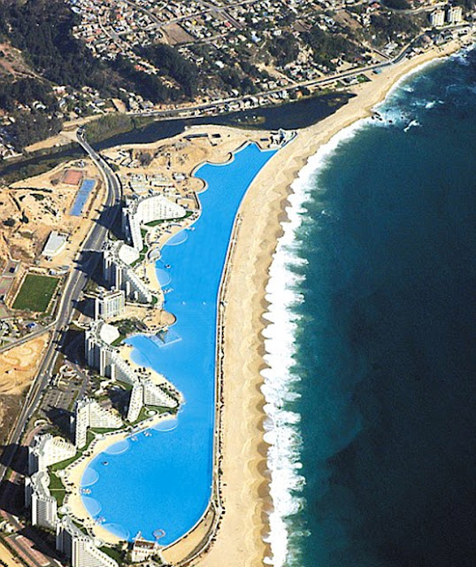 Στο παραδεισένιο καλοκαιρινό θέρετρο San Alfonso del Mar Resort στη Χιλή, μια γρήγορη βουτιά θα μπορούσε κάλλιστα να μετατραπεί σε… μαραθώνιο! Πρόκειται για τη μεγαλύτερη εξωτερική πισίνα στο κόσμο, με μήκος περίπου ένα χιλιόμετρο σε (965 μέτρα) – όσο 20 πισίνες ολυμπιακών διαστάσεων.