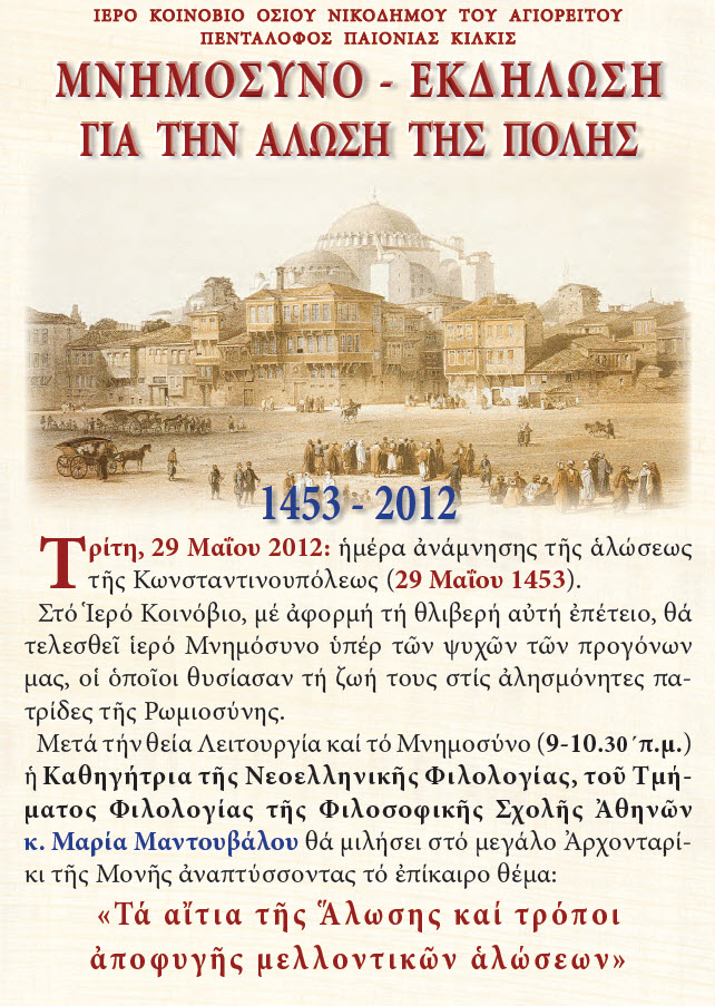 Μνημόσυνο-Εκδήλωση για την Άλωση της Πόλης