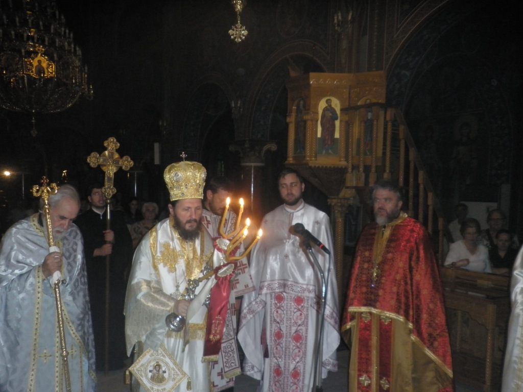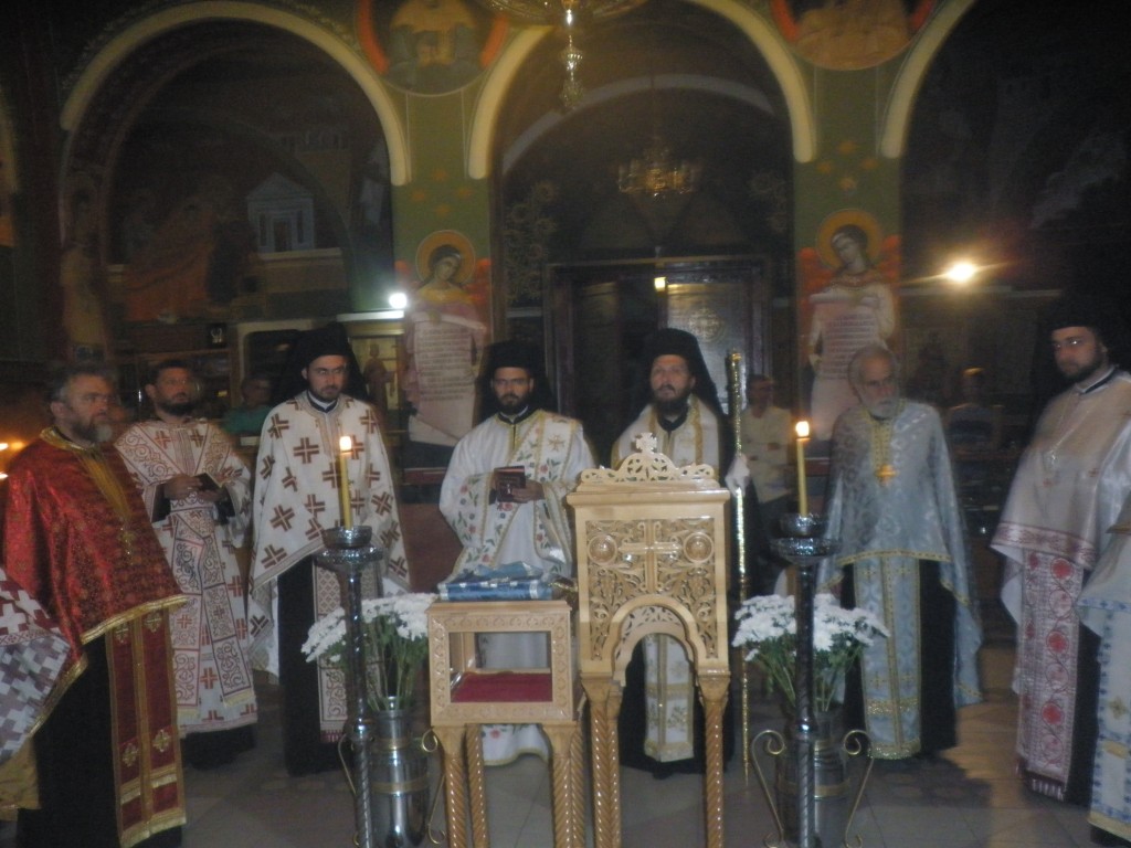 Ψάλθηκε ο Μέγας Εσπερινός μετά Λιτής, Όρθρος και τελέσθηκε Θεία Λειτουργία, προεξάρχοντος του Επίσκοπου Σαλώνων Αντωνίου, Γενικού Διευθυντού της Εκκλησιαστικής Κεντρικής Υπηρεσίας Οικονομικών.Στην Θεία λειτουργία έλαβαν μέρος ο Σερβομαθής πρωτοπρεσβύτερος Σταμάτιος Σκλήρης, και οι Σέρβοι κληρικοί Ιωάννης Madzic, Ιουστίνος Jeremic, Νέναντ Mihailovic, Μακάριος Imamovic, Ευσέβιος Meandzija, Ντούσαν Bursac και Νικόλαος Gacevic.