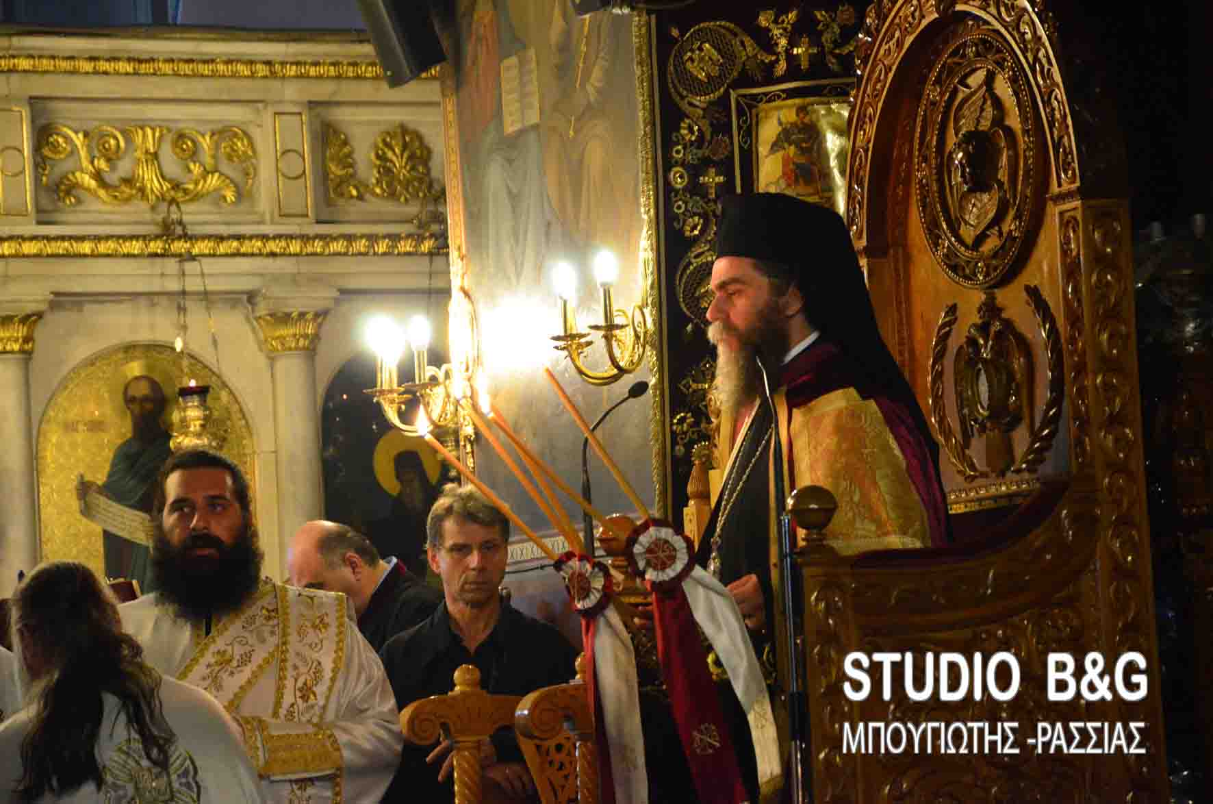 Πανηγυρικά εορτάστηκε η εορτή αυτή στον μητροπολιτικό ναό του Αγίου Γεωργίου στο Ναύπλιο ,με νυχτερινή θεία λειτουργία. Τόσο στον εσπερινό όσο και στη θεία λειτουργία χοροστάτησε ο θεοφιλέστατος επίσκοπος Επιδαύρου κ. Καλλίνικος, παρόντος και του Μητροπολίτη Αργολίδος κ.κ Ιακώβου. Καθόλη την διάρκεια της ιεράς Αγρυπνίας είχε τεθεί προς προσκύνηση τεμάχιο ιερού λειψάνου του Αγίου Γεωργίου του Μεγαλομάρτυρος.