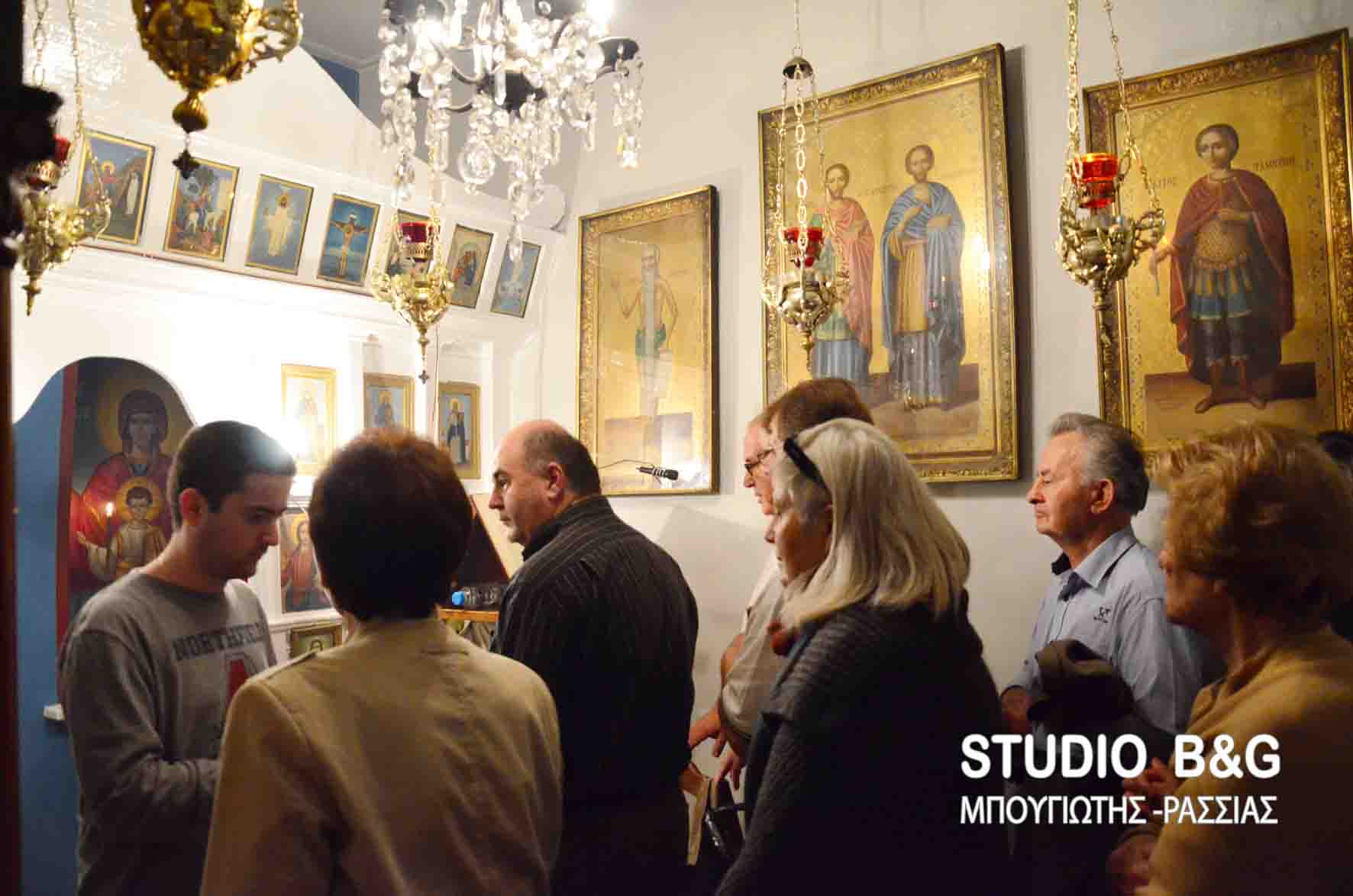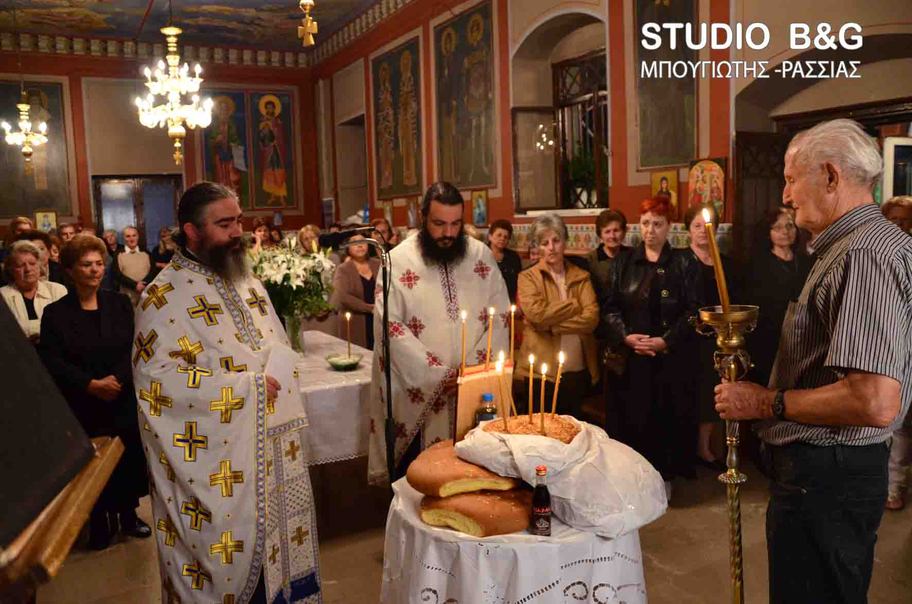 Φέτος τον πανηγυρικό εσπερινό τέλεσαν ο πρωτοπρεσβύτερος πατέρας Ελευθέριος Μίχος και ο πατέρας Γεώργιος Φρίμης . Να σημειωθεί πως ο κοιμητηριακός ναός της πόλεως Ναυπλίου είναι κτίσμα του 1852 και κτήτορα του Μιχαήλ Ιατρού ευεργέτου της πόλεως.
