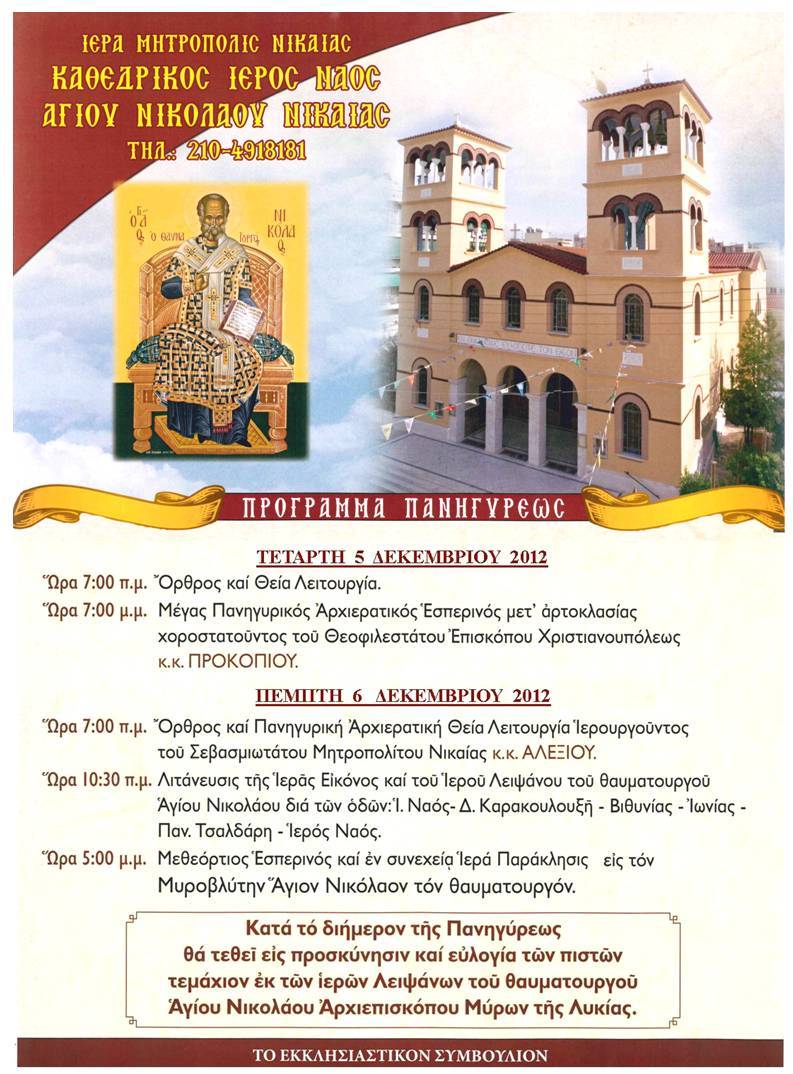 Τον Πολιούχο & Προστάτη της ,Άγιο Νικόλαο εορτάζει η Νίκαια