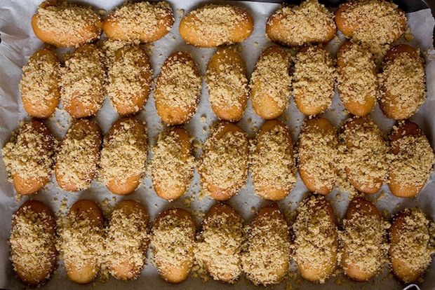 Έτσι εκείνο το απόγευμα αναζήτησα το γυάλινο μπολ με το φαρδύ χείλος στο ντουλάπι και αποφάσισα εκεί να ζήσω τις ανύπαρκτες μνήμες μου. Ανακάτεψα το ελαιόλαδο, το κονιάκ και το ξύσμα με αργές κινήσεις. Εμπλούτιζα το βαθύ πράσινο χρώμα του ελαιόλαδου με τα αρώματα της κανέλας, του γαρίφαλου και έριχνα για «διαλυτικό» την ζάχαρη ενώ ανακάτευα με μια ξύλινη κουτάλα απαλά. Έστυψα τα πορτοκάλια και γέμισα μια κούπα. Την κράτησα πάνω από το μίγμα και έβαλα μια κουταλιά γεμάτη σόδα μέσα, ανακάτεψα και σε λίγο άρχισα να ακούω και να βλέπω το ηφαίστειο μιας σπουδαίας χημικής ένωσης. Η πορτοκαλάδα άφριζε, άλλαζε χρώμα και διπλασιάζονταν. Ξεχείλιζε και χύνονταν στο μίγμα. Μετά την ένωσή τους ανέβασα τα μανίκια και με το δεξί μου χέρι βούτηξα σε μια υπέροχη αρωματική υφή. Με το άλλο μου χέρι έριχνα λίγο – λίγο το αλεύρι και ζύμωνα απαλά. Η ζύμη το ήθελε το ένα κιλό, ξεγλιστρούσε από τα δάχτυλά μου αλλά ήθελε άλλο λίγο αλεύρι. Άλλη μια κούπα μου πήρε και η μάζα της έγινε αφράτη και λαμπερά μυρωδάτη. Έβγαλα δύο ρηχά ταψιά, άπλωσα λαδόκολλες και άρχισα να σχηματίζω μικρές μπαλίτσες. Στη συνέχεια έπαιρνα κάθε μπαλίτσα την άπλωνα στο χοντρό μέρος ενός τρίφτη και από τα πλαινά της την μάζευα για να ενωθεί με την άλλη πλευρά ενώ ουσιαστικά έκανε κατά μήκος ένα μικρό κενό. Αυτό ήταν το μυστικό.