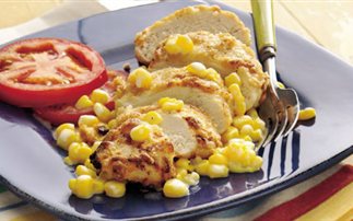 Σε ξύλο κοπής κόβουμε τα στήθη του κοτόπουλου σε φέτες περίπου ενός εκατοστού και αλατοπιπερώνουμε.