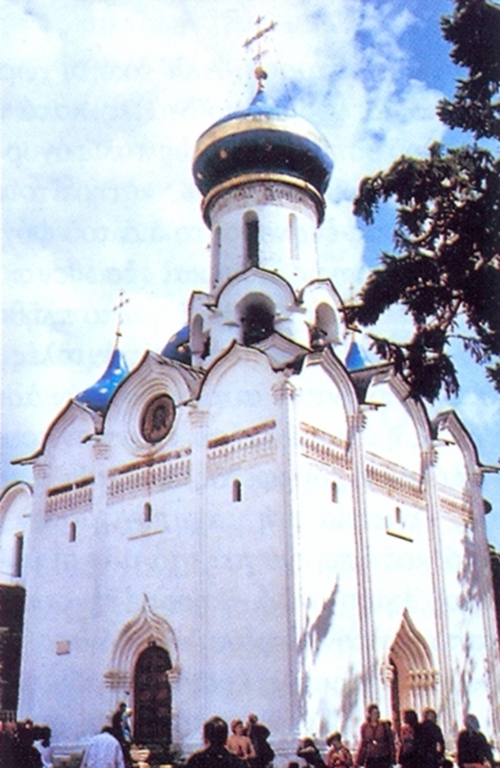 Ο περίτεχνος λευκός Ναός του Αγίου Πνεύματος στη Λαύρα του Αγίου Σεργίου της Ιεράς Μονής Αγίας Τριάδος στο Ζαγκόρσκ στη βορειοδυτική γωνιά του οποίου ευρίσκετο ο τάφος του Αγίου Μαξίμου του Γραικού.