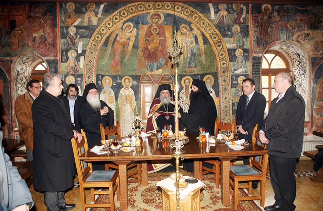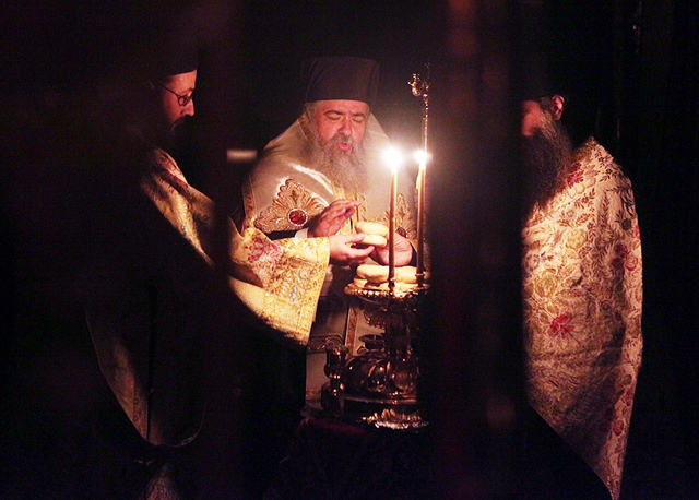 Ανήμερα των Θεοφανείων ο Σεβασμιώτατος ευλόγησε τον πρωτοχρονιάτικο άρτο της Μονής παρουσία του Καθηγουμένου π. Αλεξίου, του Καθηγουμένου της Ιεράς Μονής Παντοκράτορος π. Γαβριήλ, της Αδελφότητας της Μονής και των προσκυνητών.