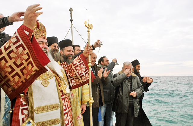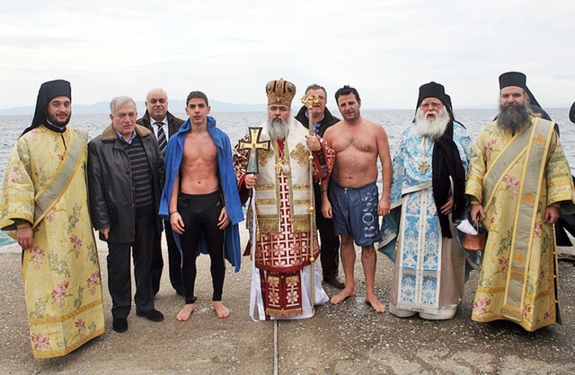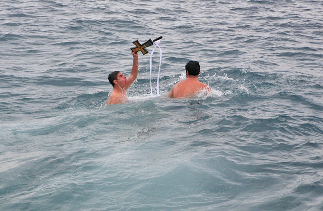 Η καθιερωμένη ρίψη του Τιμίου Σταυρού στη θάλασσα πραγματοποιήθηκε την επομένη, εορτή του Τιμίου Προδρόμου, λόγω των δυσμενών καιρικών συνθηκών. Τον Τίμιο Σταυρό ανέσυρε, για δεύτερη φορά φέτος, ο φοιτητής Κωνσταντίνος Ρέρρης, στον οποίο ο Σεβασμιώτατος προσέφερε έναν χρυσό Σταυρό.
