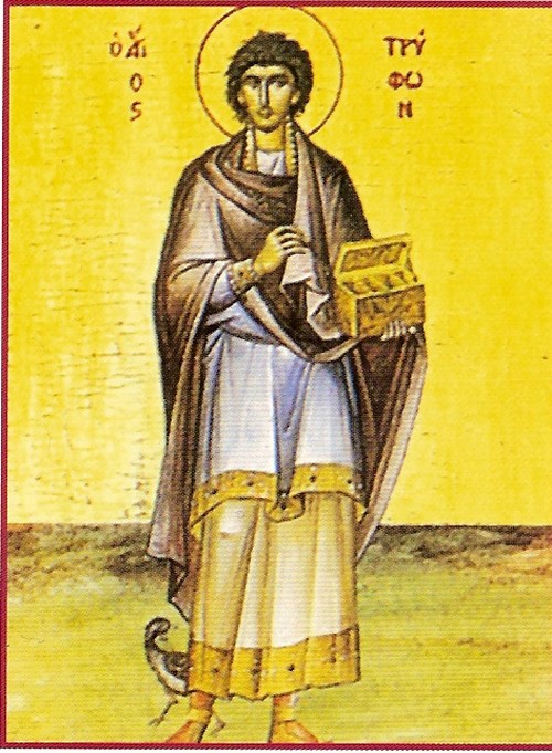 O Άγιος Τρύφων καταγόταν από τη Λάμψακο της Φρυγίας και έζησε στα χρόνια των αυτοκρατόρων Γορδιανού (238-244), Φιλίππου (244-249) και Δεκίου (249-251).