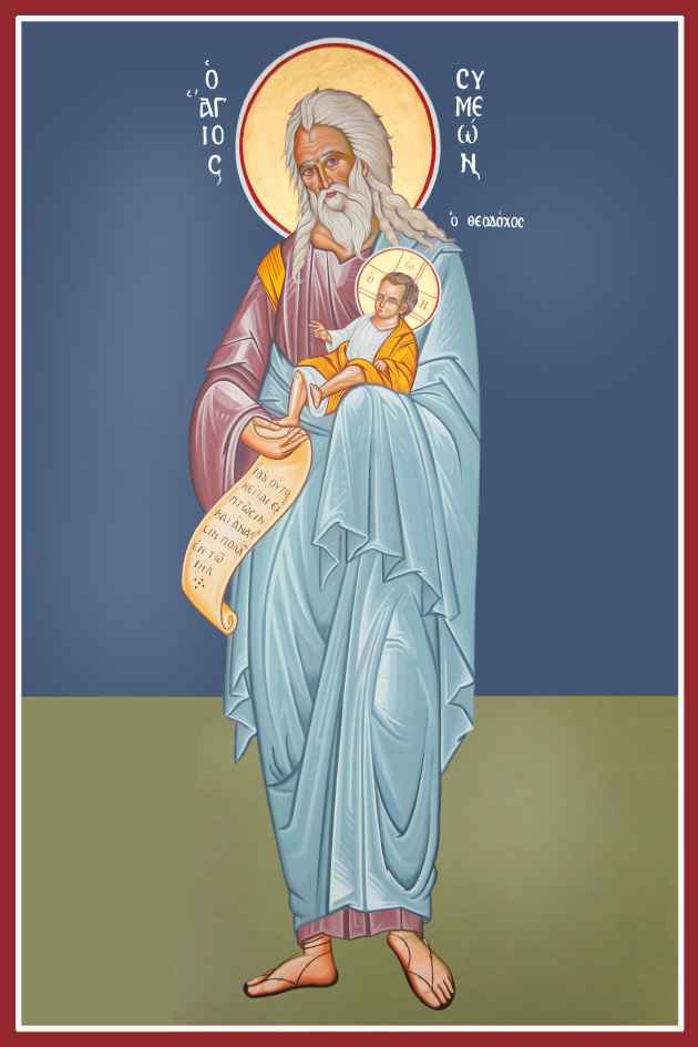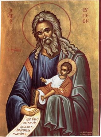 Τον κρατάει ευλαβικά και, αφού καλά – καλά παρατήρησε το νήπιο και δέχθηκε όλη την ιλαρότητα της θείας μορφής του, ύψωσε το βλέμμα του επάνω και είπε ευχαριστώντας το Θεό: «Νυν απολύεις τον δούλον σου, Δέσποτα, κατά το ρήμα σου εν ειρήνη· ότι είδον οι οφθαλμοί μου το σωτήριόν σου, ο ητοίμασας κατά πρόσωπον πάντων των λαών, φως εις άποκάλυψιν εθνών και δόξαν λάου σου Ισραήλ».