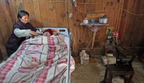 Ένας Κινέζος ζει εδώ και πέντε χρόνια κλινήρης στο σπίτι του υποστηριζόμενος από ιατρικά εργαλεία που τον κρατούν στη ζωή κατασκευασμένα από τους γονείς του!