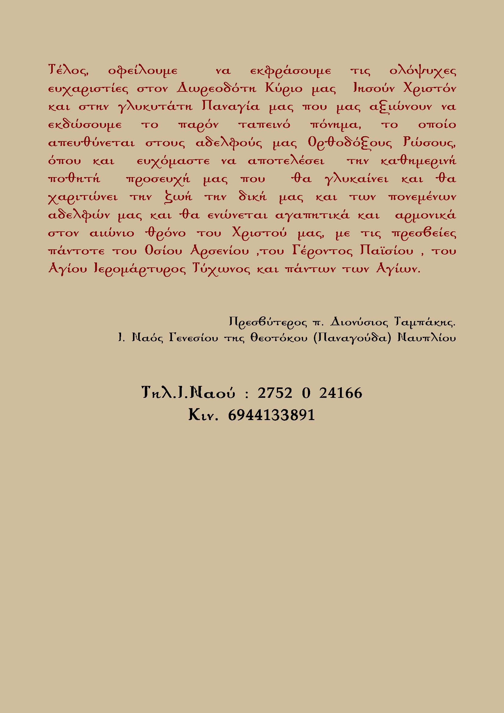 Μια έκδοση βιβλίου  για το Ρωσικό  λαό  που αγαπά τον Γέροντα Παϊσιο  για να τον  βοηθηθεί στην προσευχή του και στις περιστάσεις όπου διανύει.