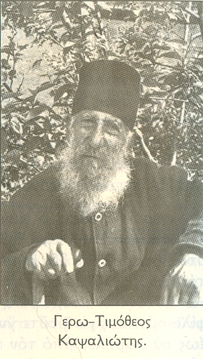 O γερω-Τιμόθεος ό Καψαλιώτης είχε έρθει πρόσφυγας από την Προύσα. Έζησε 67 χρόνια στο Όρος. Ποτέ δεν βγήκε στον κόσμο. Γύρισε όλο το Όρος.