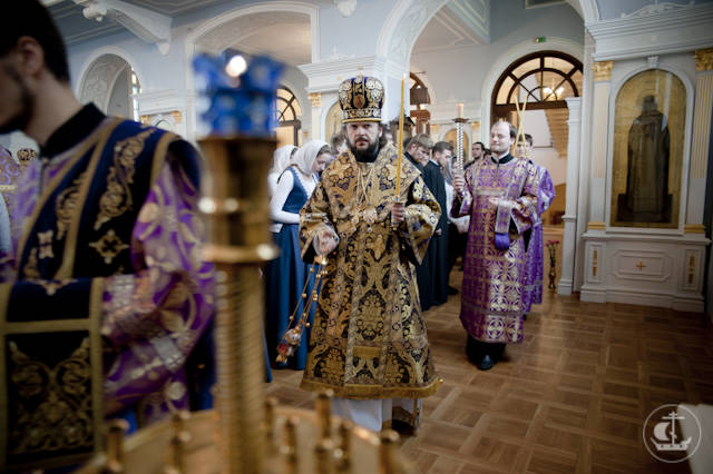 Κατόπιν προσκλήσεως του Σχολάρχου, Επισκόπου Πετεργκώφ κ. Αμβροσίου, οι ιερομόναχοι Θωμάς και Φίλιππος της Καλύβης »Θωμάδες» των Κατουνακίων προσήλθαν στην θεία Λειτουργία.