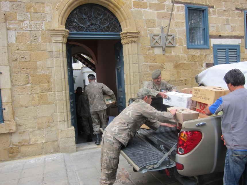 Τα μόνιμα στελέχη της 8ης Ταξιαρχίας Πεζικού και των Μονάδων που εδρεύουν στην περιοχή ευθύνης, μέσα στα πλαίσια έκφρασης της κοινωνικής αλληλεγγύης προς τους δυσπραγούντες συνανθρώπους μας, παρέδωσαν την Πέμπτη, 18η Απριλίου 2013, στον Πανιερώτατο Μητροπολίτη Πάφου κ. Γεώργιο, διάφορα είδη τροφίμων για τις ανάγκες των απόρων οικογενειών της Επαρχίας Πάφου.