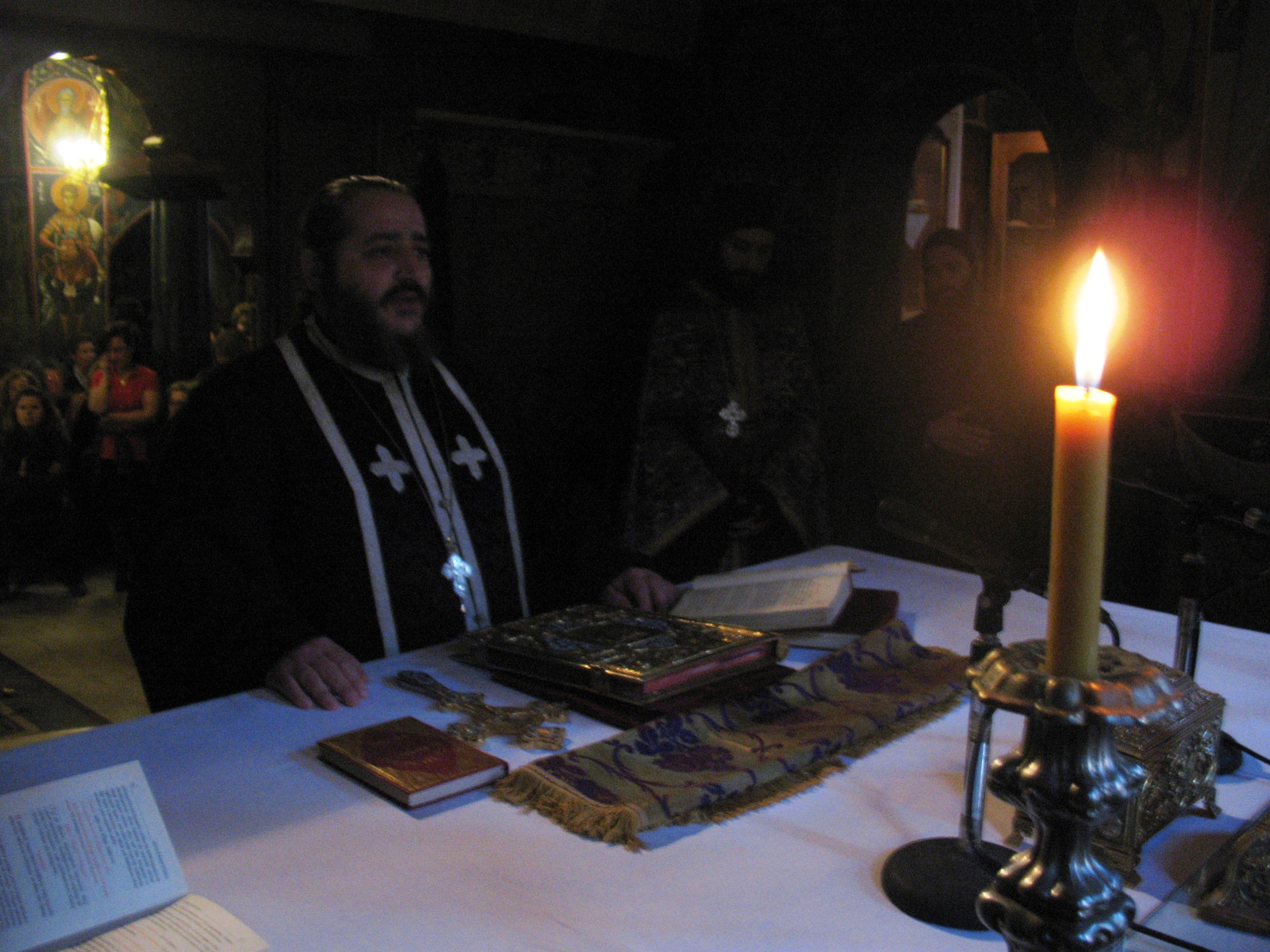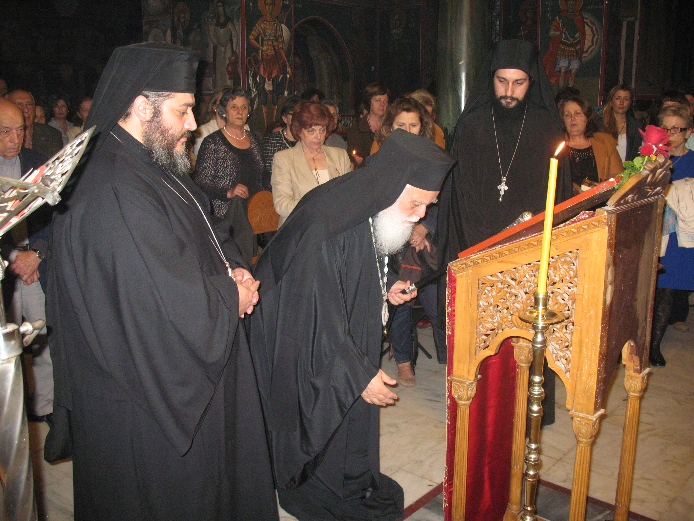 Από πολύ νωρίς οι πιστοί είχαν κατακλύσει το Καθολικό της Μονής για να ακούσουν τους ύμνους, που μαζί τους θα συμπορευτούμε μέχρι τη Σταύρωση, αλλά και μέσω αυτών θα εορτάσουμε την ένδοξο Ανάσταση του Σωτήρος Χριστού.