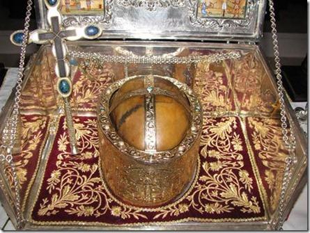 – Η αργυρά θήκη του μαρτυρικού λειψάνου που φυλάσσεται στο προσκυνηματικό ναό στα Βούναινα της Θεσσαλίας.