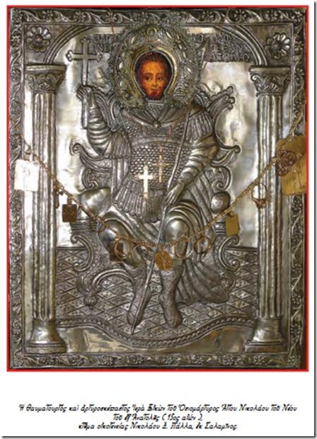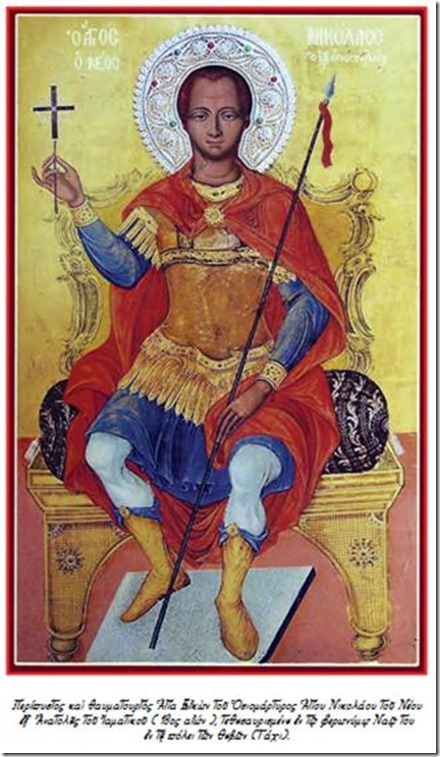 – Ο άγιος Νικόλαος ο Νέος (της Βουναίνης). Εικόνα από το Ιερό Ναό Αγίου Δημητρίου Ανάβρας (πρώην Γκούρα) Αλμυρού.