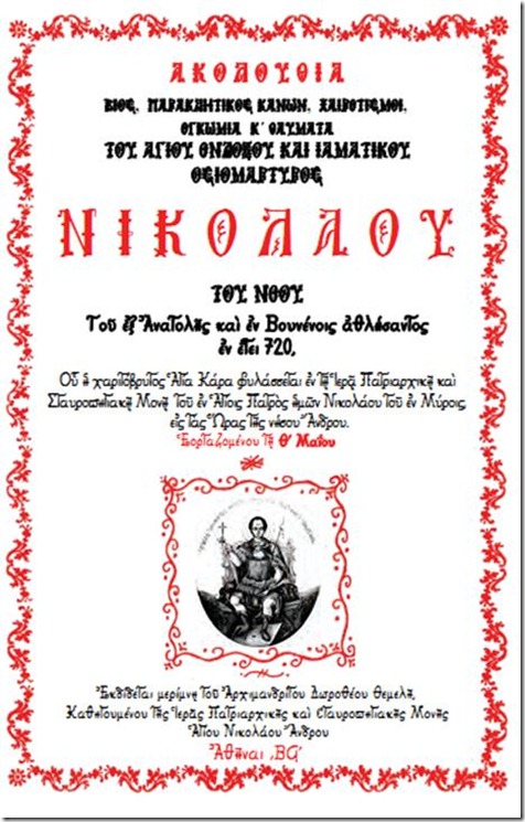– Εὐλογίες Ἁγίου νέου Ὁσιομάρτυρος Νικολάου τοῦ ἐν Βουναίνης.