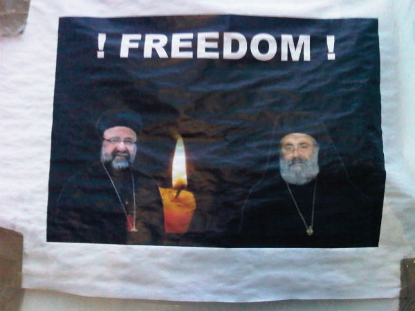 Η αφίσα για τους δύο ορθόδοξους αξιωματούχους βρίσκεται σχεδόν σε όλους στους γειτονικούς δρόμους των Βρυξελλών που πραγματοποιείται η Σύνοδος Κορυφής, στέλνει το δικό της μήνυμα στους Ευρωπαίους ηγέτες για την άμεση κινητοποίηση και ευαισθητοποίησή τους.