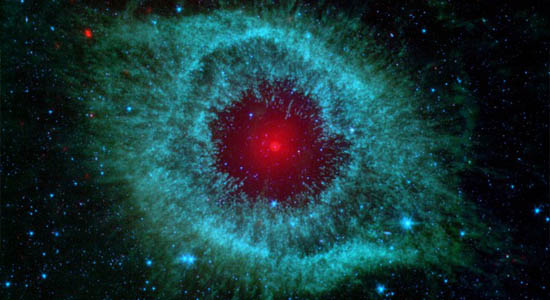 Η μυστηριώδης εικόνα, από το Διαστημικό Τηλεσκόπιο Spitzer, δείχνει υπέρυθρη ακτινοβολία από το καλά μελετημένο Νεφέλωμα Έλικας (Helix Nebula ή NGC 7293) περίπου 700 έτη φωτός μακριά στον αστερισμό του Υδροχόου.
