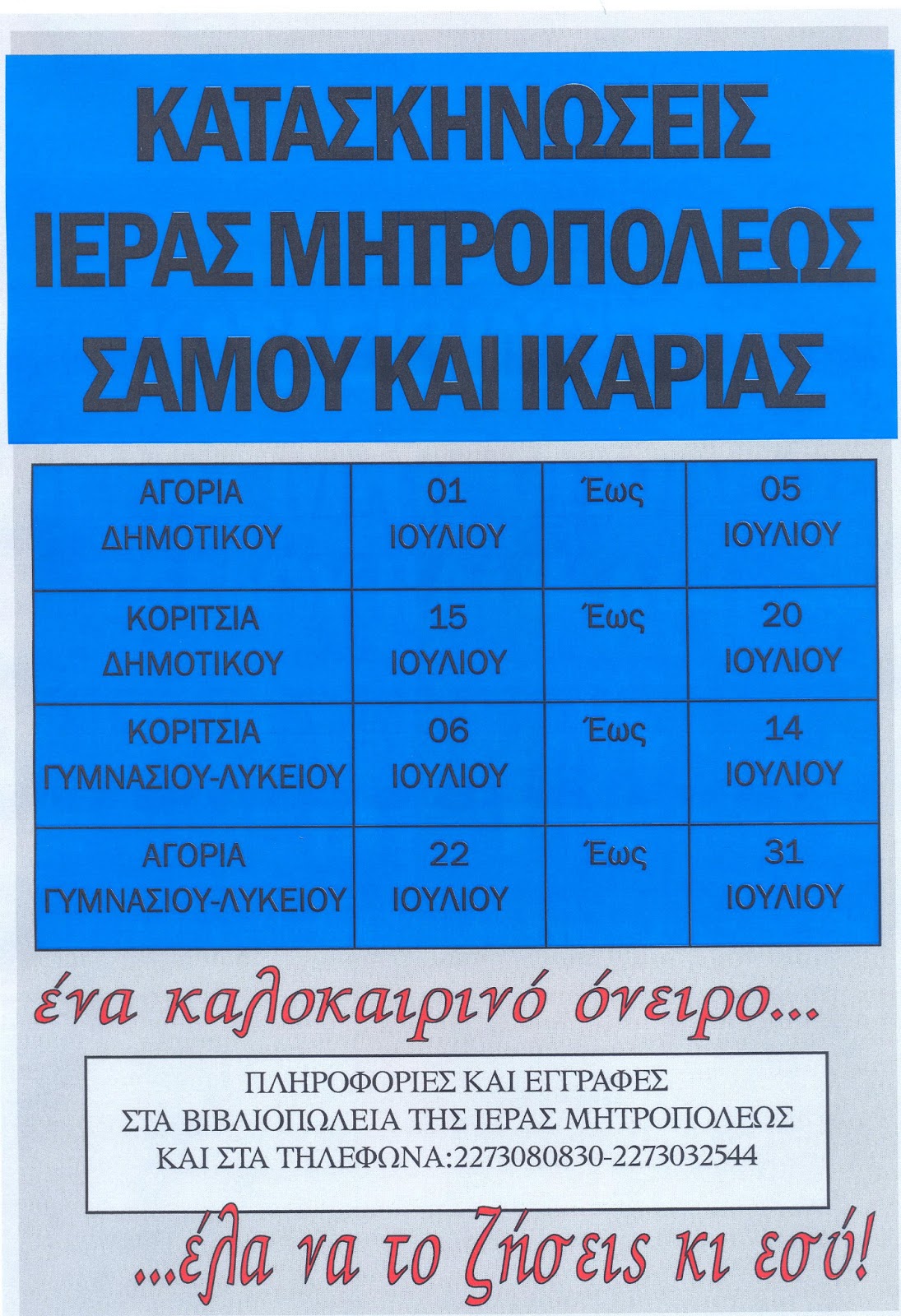 Πρόγραμμα παιδικών Κατασκηνώσεων Ιεράς Μητροπόλεως Σάμου Ικαρίας και Κορσεών.