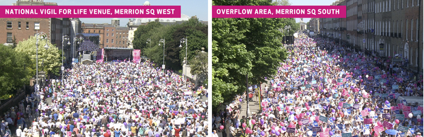 Σαράντα χιλιάδες άνθρωποι διαδήλωσαν το Σάββατο στο κέντρο του Δουβλίνου την αντίθεσή τους στο νομοσχέδιο της ιρλανδικής κυβέρνησης για τις αμβλώσεις στην εκδήλωση που είχε το όνομα ‘National Vigil for Life’ (Εθνική Αγρυπνία για τη Ζωή). Σύμφωνα με τους διοργανωτές η εκδήλωση αυτή ήταν η μεγαλύτερη συγκέντρωση που έχει γίνει «υπέρ της ζωής» στην ιστορία της Ιρλανδίας.