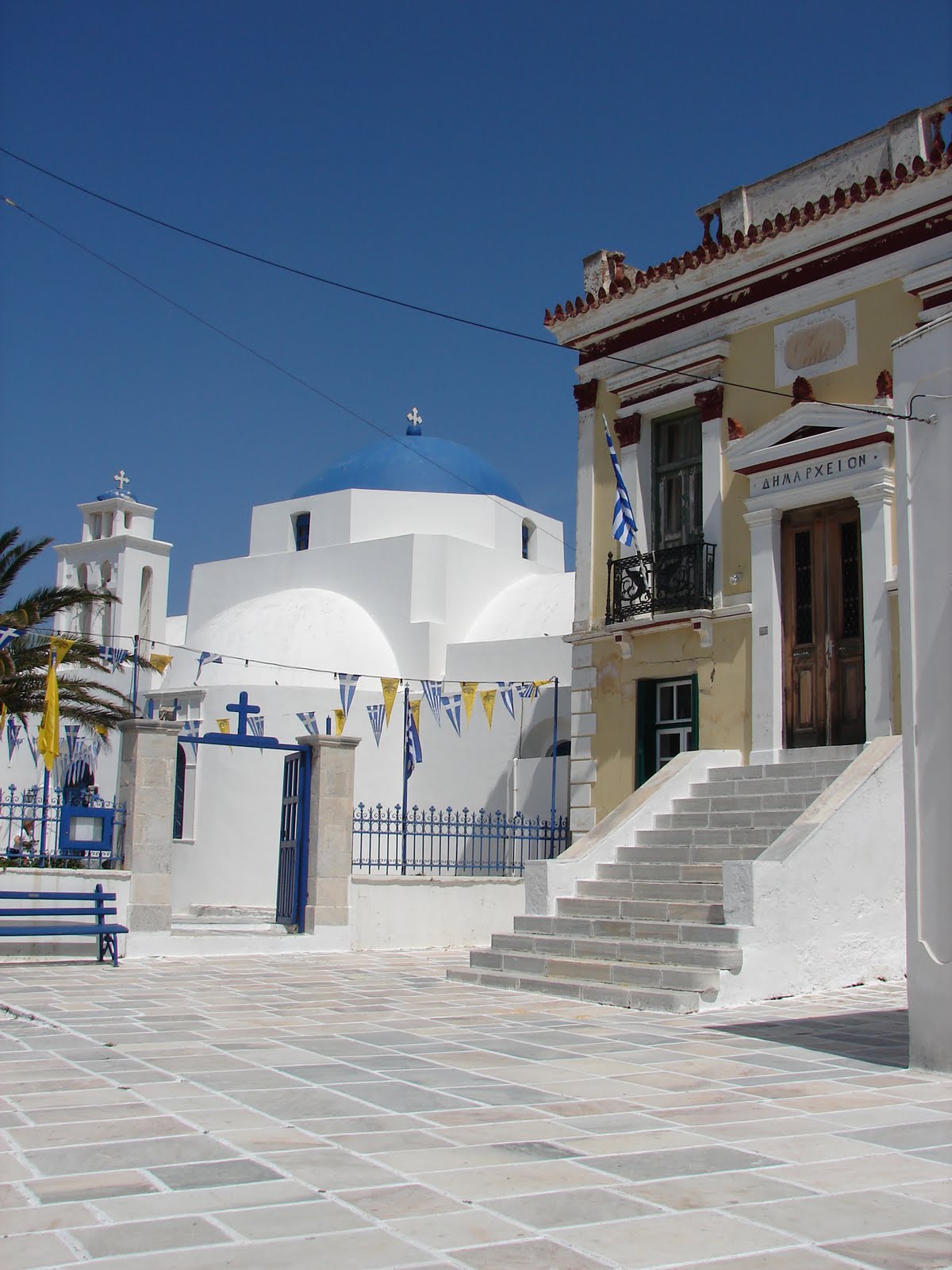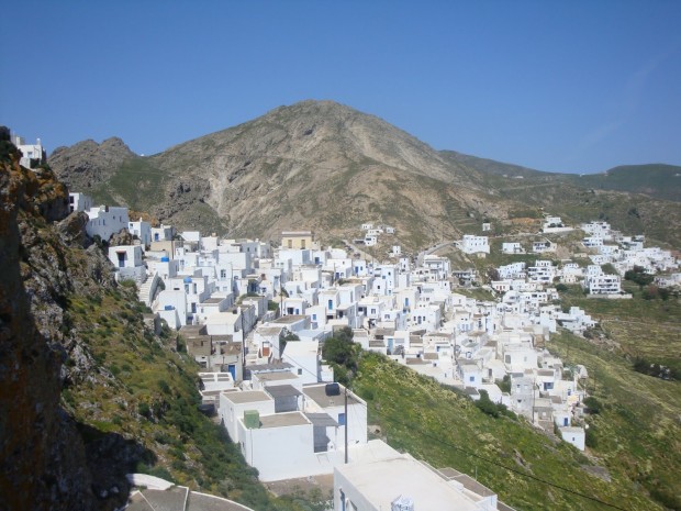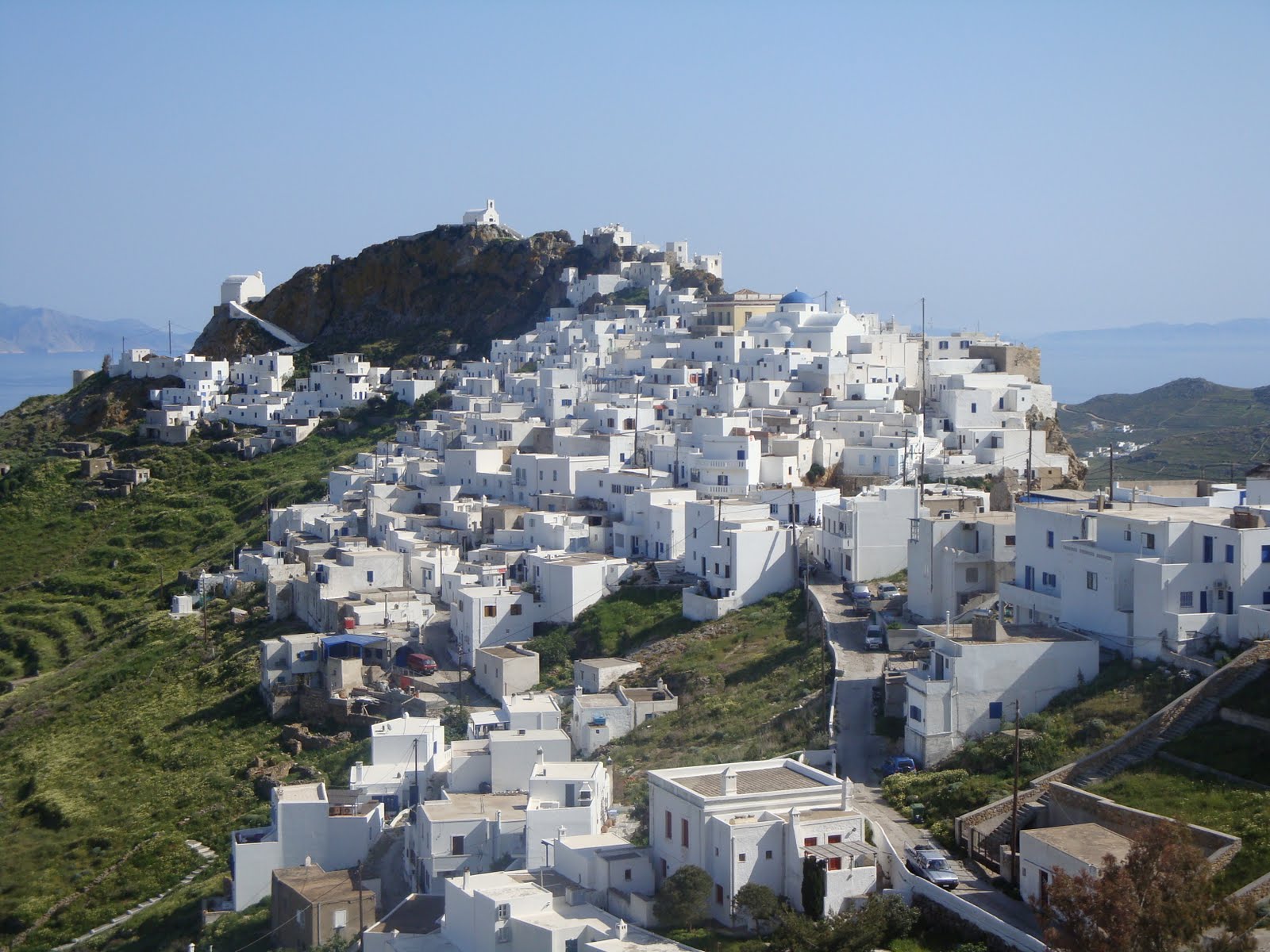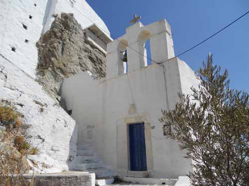 Από την κορυφή του κάστρου, όπου είναι χτισμένη η εκκλησία του Αγίου Κωνσταντίνου, η θέα είναι εντυπωσιακή και το ηλιοβασίλεμα ένα από τα ομορφότερα στο Αιγαίο! Κάτω από τον ‘Αγιο Κωνσταντίνο, χτισμένη μέσα στα βράχια είναι η εκκλησία του Αγίου Ιωάννη του Θεολόγου, και στο φρύδι του γκρεμού στέκει η εκκλησία του Χριστού με το παρεκκλήσι της Αγίας Σοφίας. Τη Χώρα κοσμούν επίσης η εκκλησία του Αγίου Αθανασίου του 19ου αιώνα (μητρόπολη), με ξυλόγλυπτο τέμπλο και θαυμάσιες εικόνες, ο ‘Αγιος Ελευθέριος και ο Ευαγγελισμός.