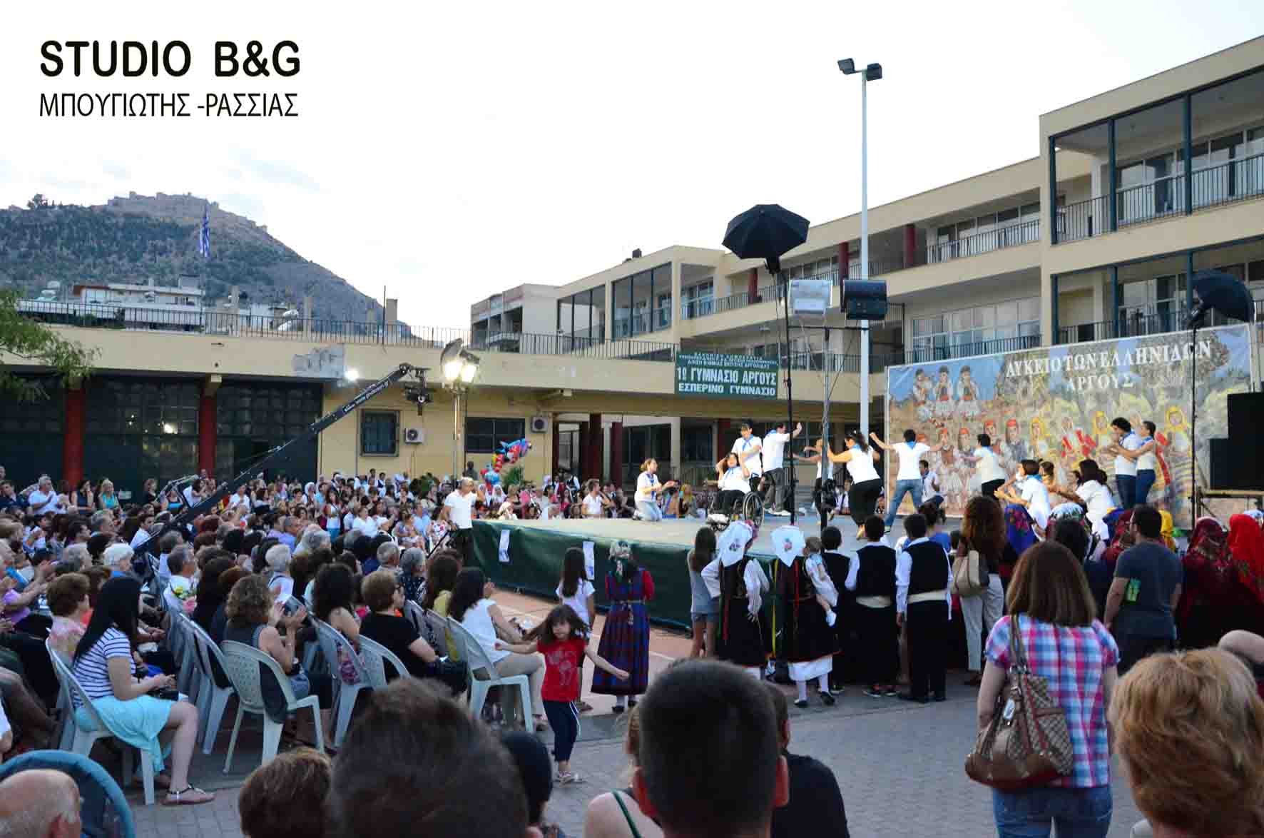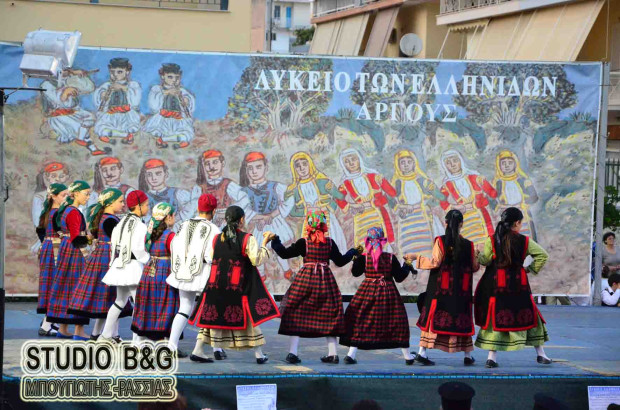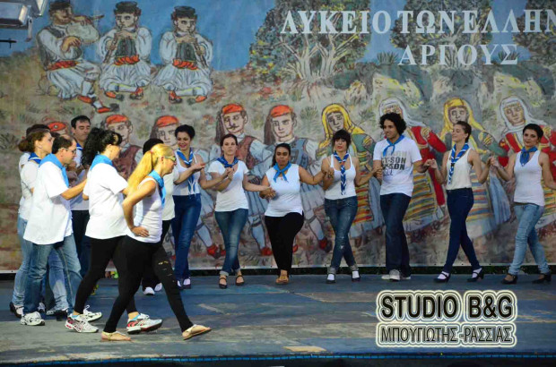 Μεγάλη χορευτική επίδειξη έγινε χθες το βράδυ από το Λύκειο Ελληνίδων παραρτήματος Άργους ,στο προαύλιο χώρο του Μπουσουλοπούλειου Γυμνασίου στο Αργος.
