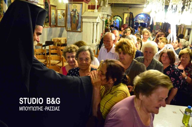 Τον πανηγυρικό εσπερινό τέλεσε ο Θεοφιλέστατος Επίσκοπος Επιδαύρου κ. Καλλίνικος ,ο οποίος κήρυξε και τον θείο λόγο, παρουσία και άλλων ιερέων από την Αργολίδα και την Αττική. Φέτος στους εορτασμούς παραβρέθηκαν για να συνεορτάσουν την Παναγία την Τριχερούσα και πιστοί από την Μητρόπολη Νικαίας .