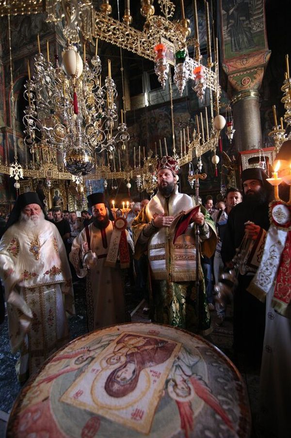 Πλήθος προσκυνητών και μοναχών έχει προσκύνησε μέχρι στιγμής την εικόνα της Παναγίας.