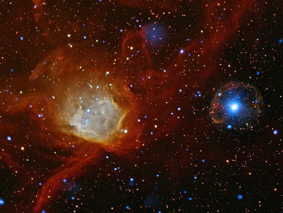 Σε αυτή την σύνθετη εικόνα, ακτίνες Χ από το Chandra και το XMM-Newton έχουν μπλε χρώμα και τα οπτικά δεδομένα από το Cerro Tololo Παρατηρητήριο στη Χιλή έχουν κόκκινο και πράσινο χρώμα. Το πάλσαρ, γνωστό και ως SXP 1062, είναι η φωτεινή λευκή πηγή που βρίσκεται στη δεξιά πλευρά της εικόνας στο κέντρο της διάχυτης μπλε εκπομπής μέσα σε ένα κόκκινο κέλυφος. Οι διάχυτες ακτίνες Χ και το οπτικό κέλυφος είναι και τα δύο στοιχεία ενός απομειναριούσουπερνόβα γύρω από το πάλσαρ. Τα οπτικά στοιχεία εμφανίζουν επίσης εντυπωσιακούς σχηματισμούς αερίου και σκόνης σε μια περιοχή αστρογέννησης στην αριστερή πλευρά της εικόνας.