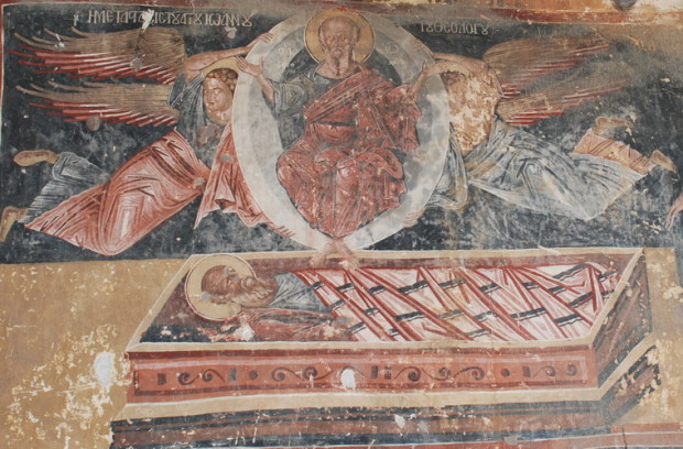 Τοιχογραφία. Κόσοβο, Πατριαρχείο του Ιππεκίου, Αναπαράσταση της κοίμησης του Αγίου Σάββα.