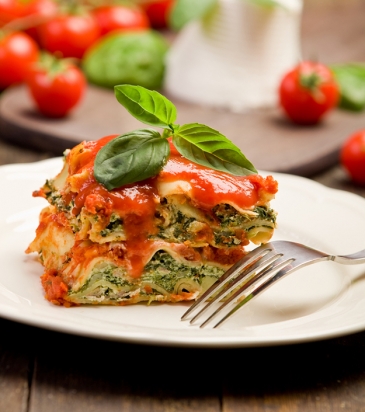 Λαζάνια με σπανάκι, ντομάτα και πράσο