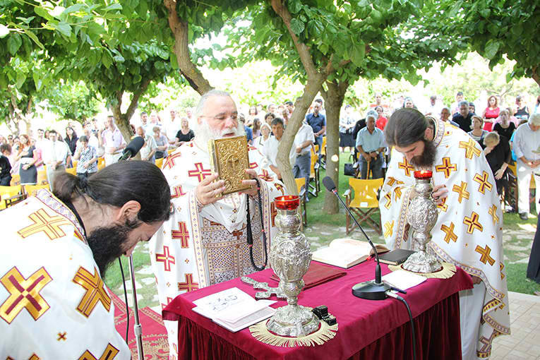 Αρκετοί πιστοί προσήλθαν τόσο στον Εσπερινό όσο και ανήμερα στην Θεία Λειτουργία, που τελέστηκαν υπαίθρια στο εκκλησάκι των κατασκηνώσεων που βρίσκεται στο «άλσος της Παναγίας».