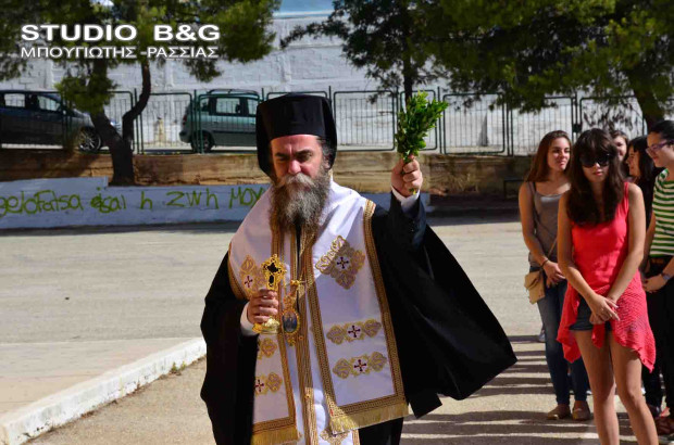 Αγιασμός τελέστηκε στο 1ο και 2ο Λύκειο Ναυπλίου από τον Θεοφιλέστατο Επίσκοπο Επιδαύρου Καλλίνικο, Τετάρτη 11 Σεπτεμβρίου 2013.