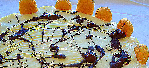 Τον στολισμό τον κάνετε αφού είναι έτοιμη η τούρτα, παγωμένη, ακόμα και πριν το σερβίρισμα αν θέλετε. Λιώνετε την σοκολάτα κ την περιχύνετε με ένα κουτάλι ζεστή, πάνω στην τούρτα και αμέσως κοκαλώνει!