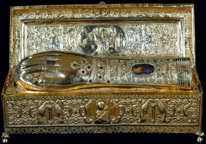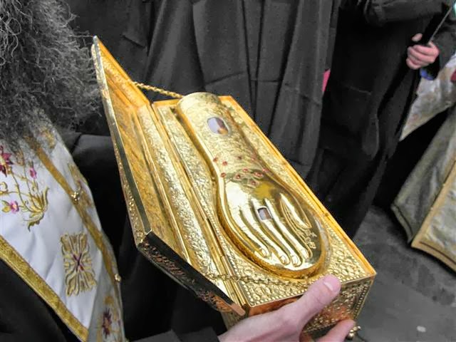 Λείψανο της δεξιάς χείρας του Αγίου Γεωργίου στην Ιερά Μονή Ξενοφώντος Αγίου Όρους 28 Σεπτεμβρίου 2013 Η Ιερά Μονή Ξενοφώντος Αγίου Όρους κατέχει ένα μέρος της δεξιάς χείρας του Αγίου Γεωργίου του Μεγαλομάρτυρος και Τροπαιοφόρου. Φωτογραφίες του αγίου λειψάνου και της λειψανοθήκης του βλέπετε παρακάτω. Πηγή: leipsanothiki.blogspot.be Tags:Λείψανο της δεξιάς χείρας του Αγίου Γεωργίου στην Ιερά Μονή Ξενοφώντος Αγίου Όρους