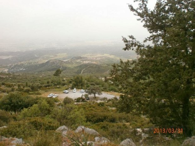 Από την αρχή τα πράγματα είναι δύσκολα. Αγκομαχάμε συνεχώς. Γι’ αυτό και κάνουμε πολλούς μικρούς σταθμούς, ξεκουραζόμαστε για λίγα λεπτά, ατενίζουμε τη θέα της πεδιάδας και βγάζουμε και τις απαραίτητες φωτογραφίες. Η μέρα, όμως, είναι ακατάλληλη, αφού η σκόνη καλύπτει τα πάντα.